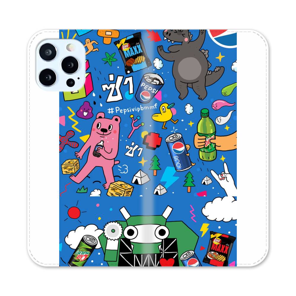 Pepsi mit Comic Figuren Apple iPhone 12 Pro Flip Case● Seitlich klappbar