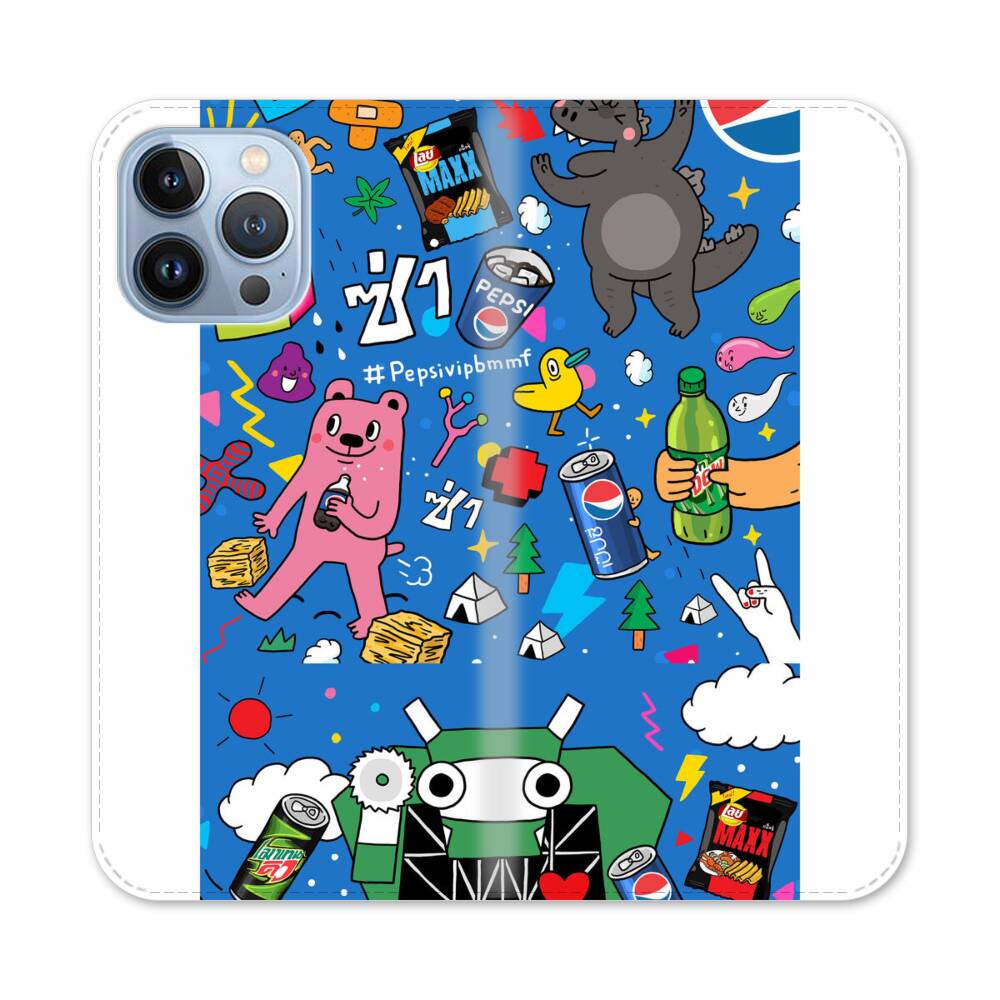 Pepsi mit Comic Figuren Apple iPhone 13 Pro Max Flip Case● Seitlich klappbar
