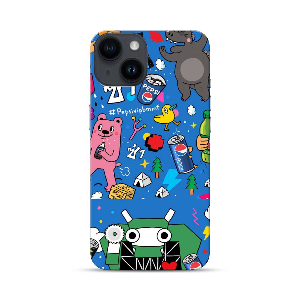 Pepsi mit Comic Figuren Apple iPhone 14 Hülle● Rundum bedruckbar