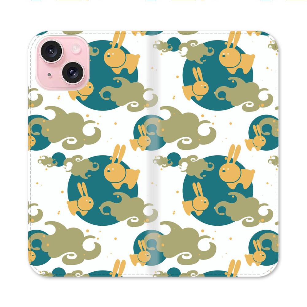 Comic Hase Im Mond Apple iPhone 15 Flip Case● Seitlich klappbar