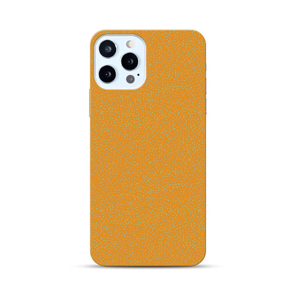 Grüne Pünktchen auf orangen Hintergrund Apple iPhone 12 Pro Hülle● Rundum bedruckbar