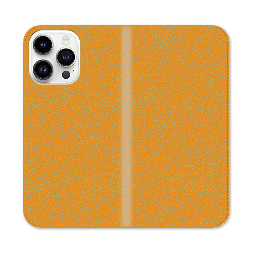 Grüne Pünktchen auf orangen Hintergrund Apple iPhone 14 Pro Max Flip Case● Seitlich klappbar