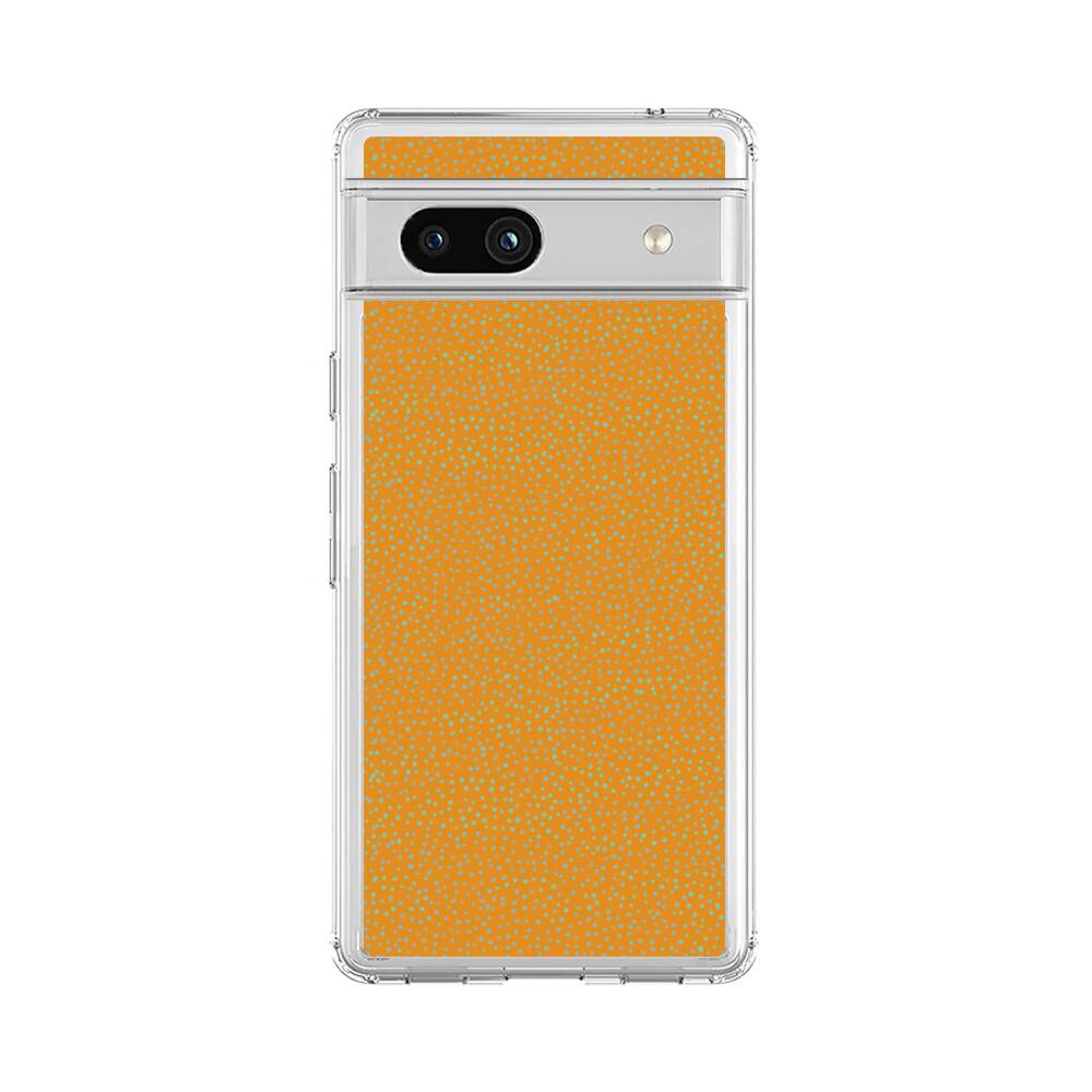 Grüne Pünktchen auf orangen Hintergrund Google Pixel 7a Silikon Hülle● Sehr robust & langlebig