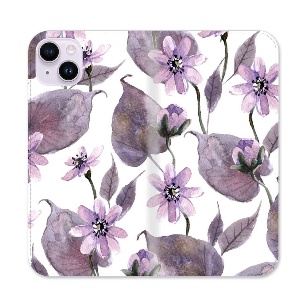 Lila Hand Gezeichnetes Lotus Apple iPhone 14 Plus Flip Case● Seitlich klappbar