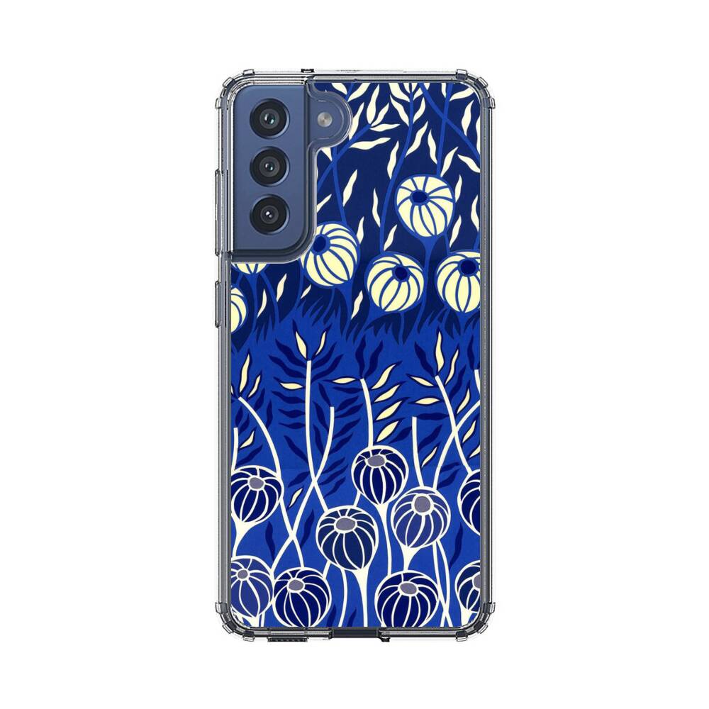 Indigo Mohnblumen Samsung Galaxy S21 FE 5G Silikon Hülle● Sehr robust & langlebig