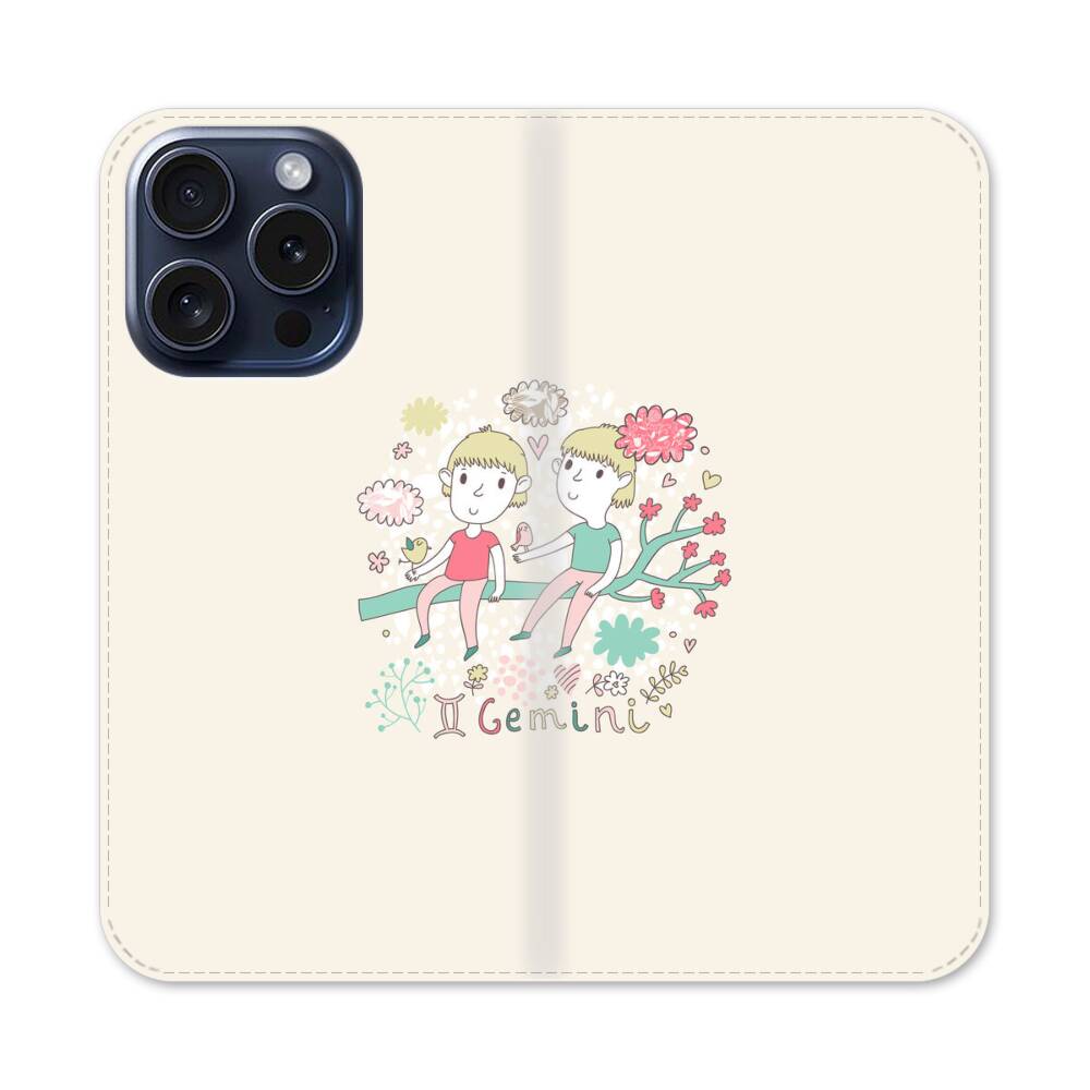 Sternzeichen Zwilling Apple iPhone 15 Pro Flip Case● Seitlich klappbar
