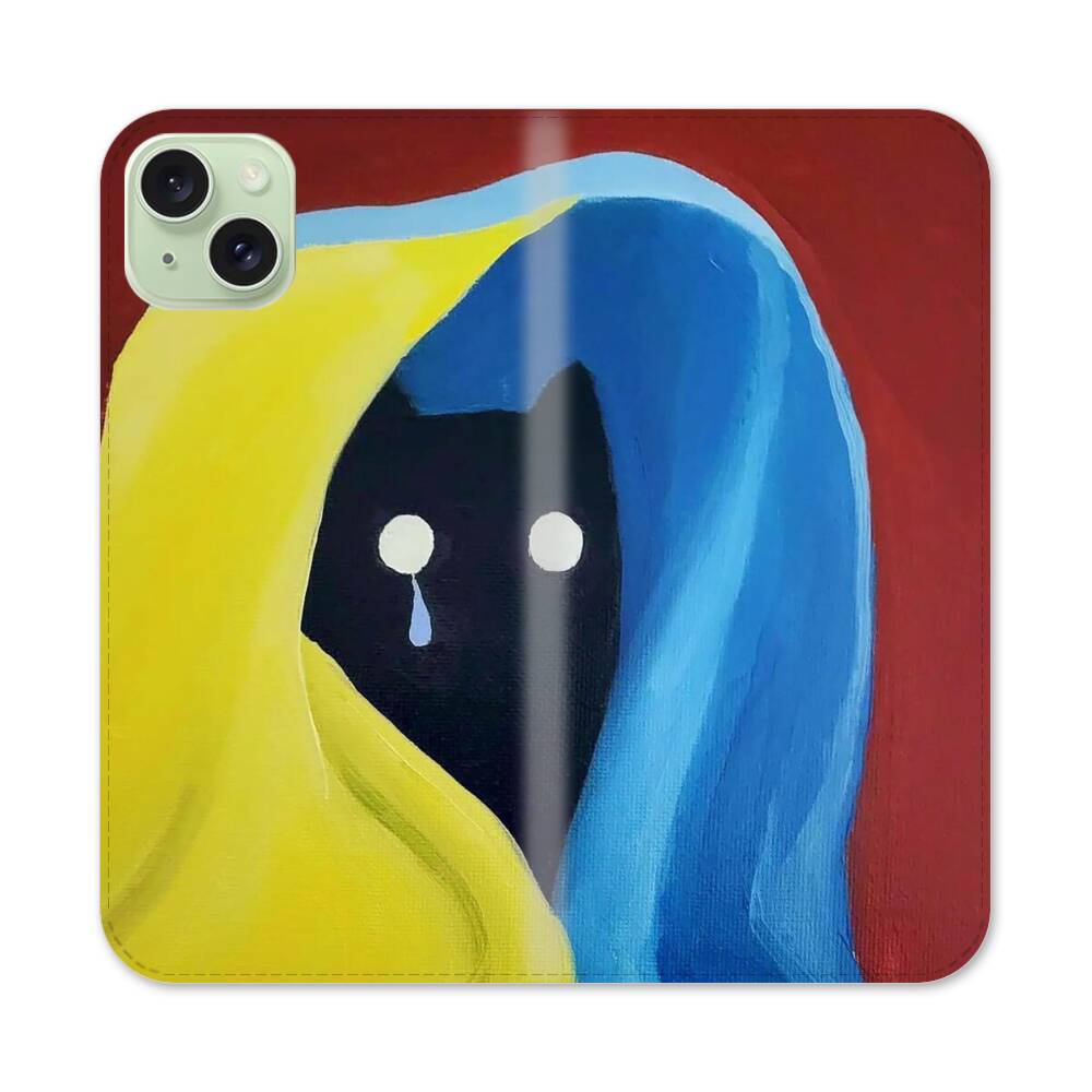 Eine traurige Katze Apple iPhone 15 Plus Flip Case● Seitlich klappbar