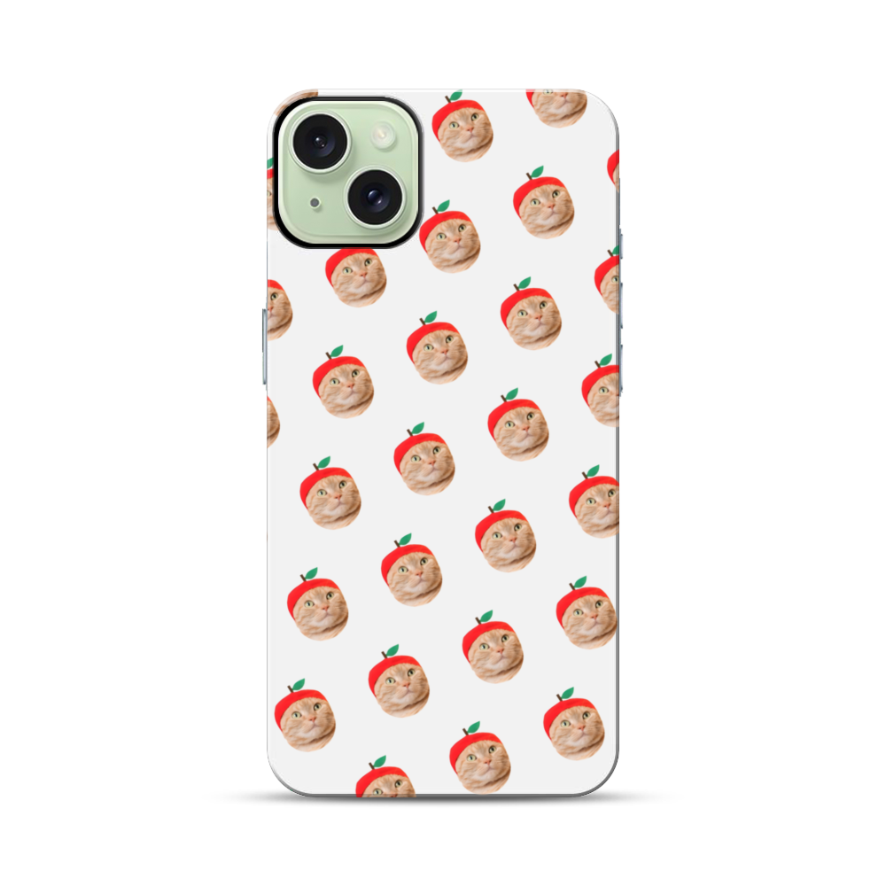 Nahtlose Katze mit Äpfelhut Apple iPhone 15 Plus Hybrid Case● Rundum bedruckbar