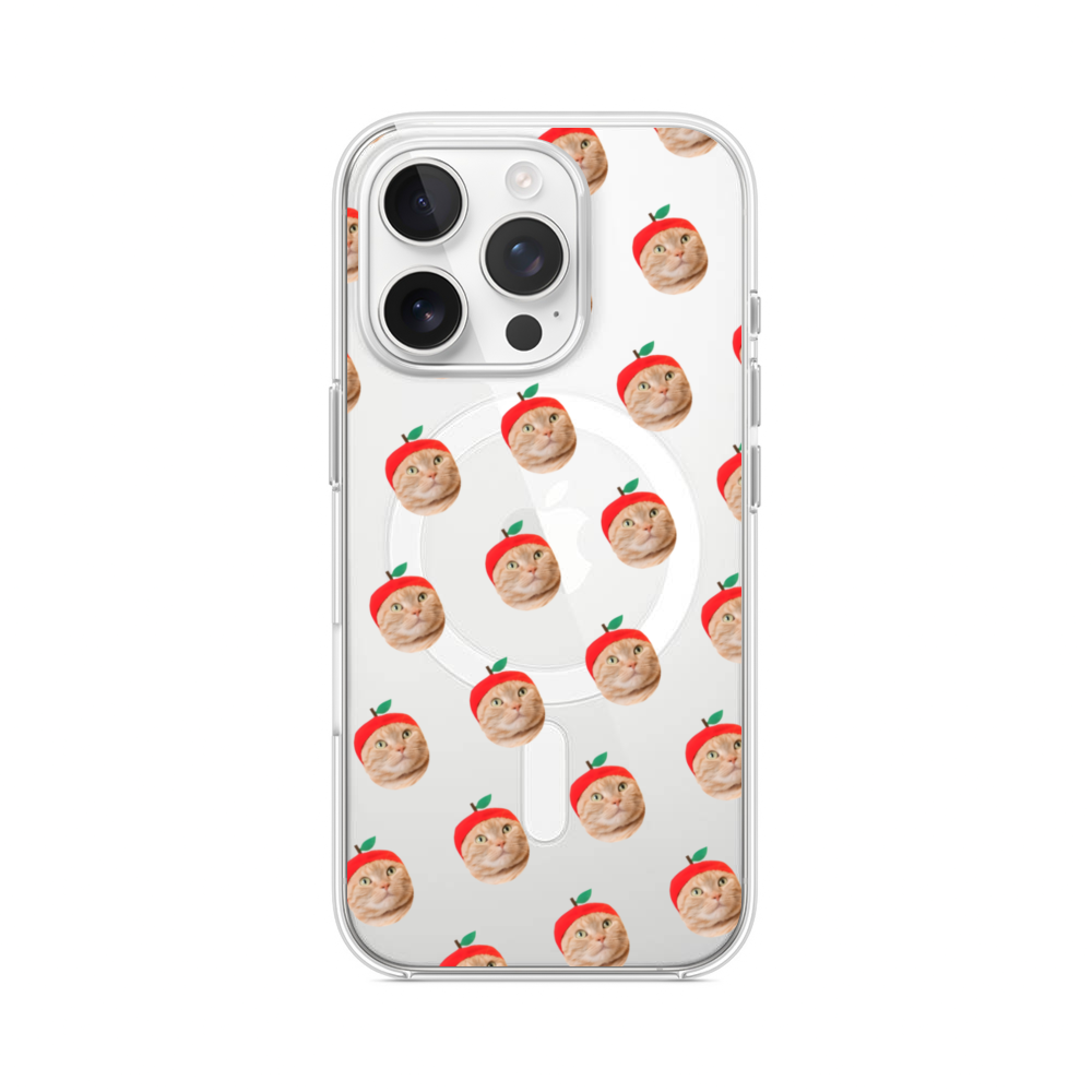 Nahtlose Katze mit Äpfelhut iPhone 14 Pro MagSafe‑kompatible Silikonhülle mit Kamera‑Kickstand● Sehr robust & langlebig