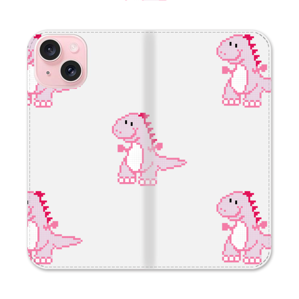 Kawaii pinke Dinosaurier Apple iPhone 15 Flip Case● Seitlich klappbar