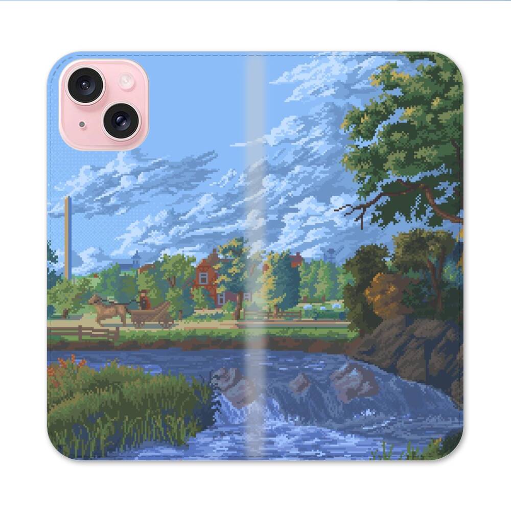 Verpixelte Landschaft Apple iPhone 15 Flip Case● Seitlich klappbar