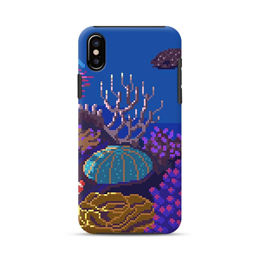 Verpixelte Korallen iPhone XS Hybrid Hülle● Rundum bedruckbar