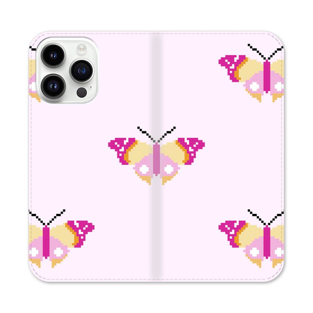 Pinke Motten Apple iPhone 14 Pro Max Flip Case● Seitlich klappbar