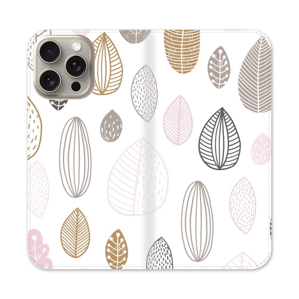 Verschiedene Hand Gezeichnete Baumblätter Apple iPhone 15 Pro Max Flip Case● Seitlich klappbar