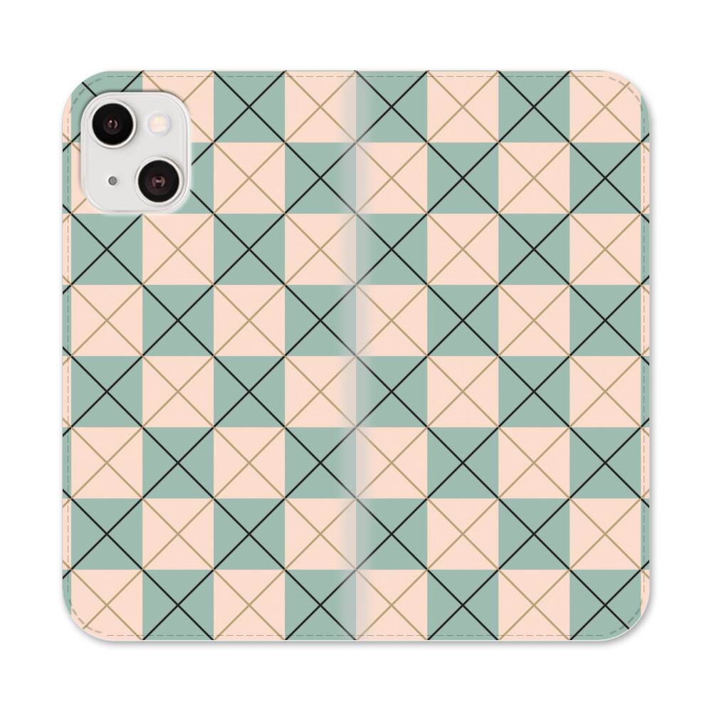 Nahtlose grün gelb Karo Apple iPhone 13 Flip Case● Seitlich klappbar