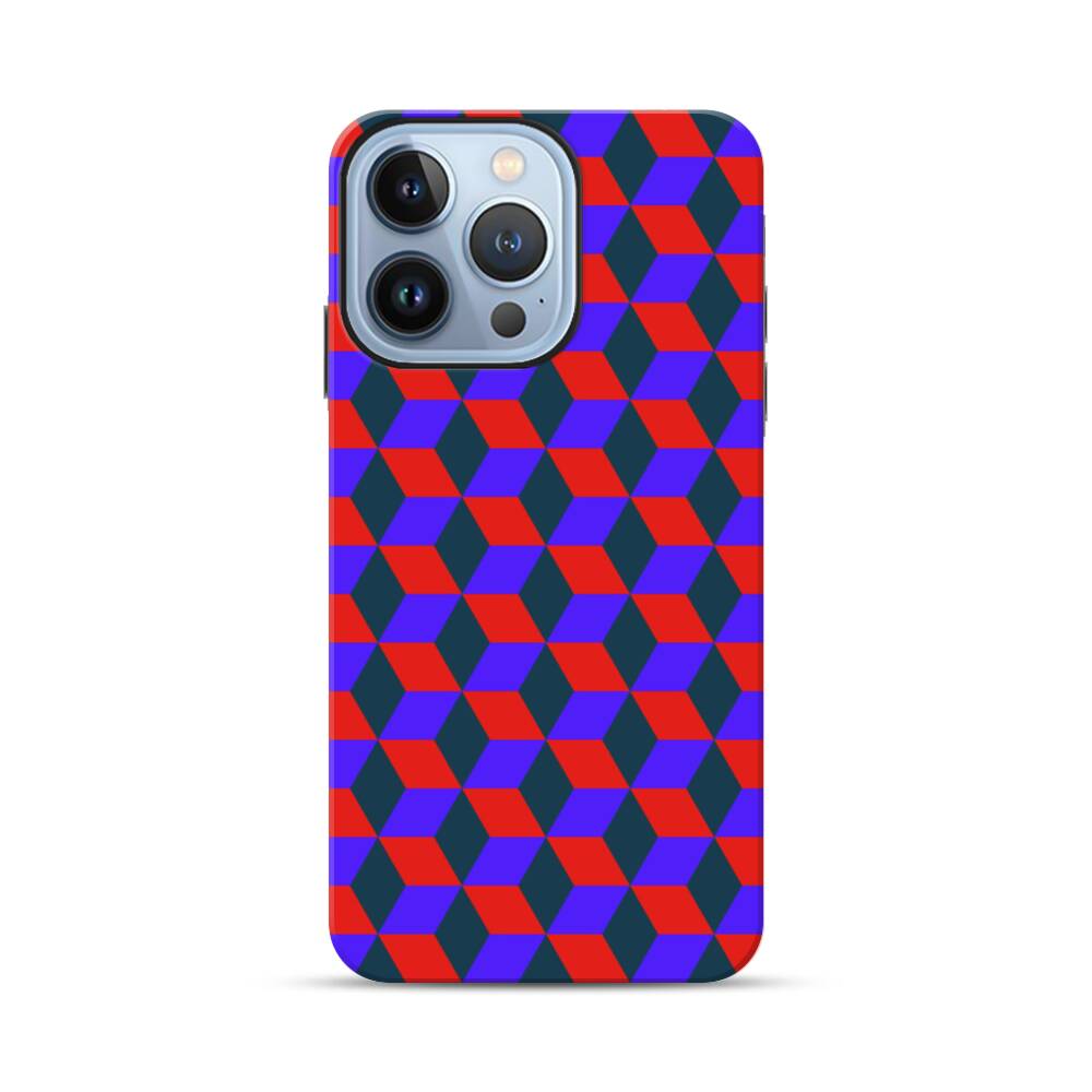 3D Kubus im Rot und Blau Apple iPhone 13 Pro Max Hybrid Case● Rundum bedruckbar