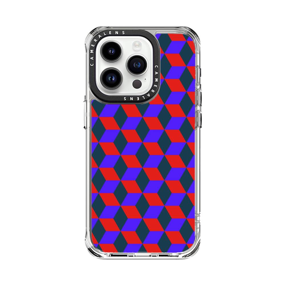 3D Kubus im Rot und Blau Apple iPhone 14 Pro Silikon Hülle● Sehr robust & langlebig