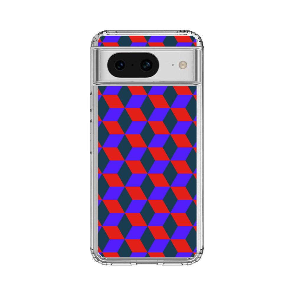 3D Kubus im Rot und Blau Google Pixel 8 Silikon Hülle● Sehr robust & langlebig