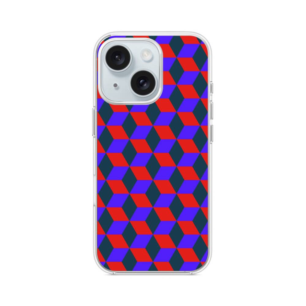 3D Kubus im Rot und Blau iPhone 15 MagSafe‑kompatible Silikonhülle mit Kamera‑Kickstand● Sehr robust & langlebig