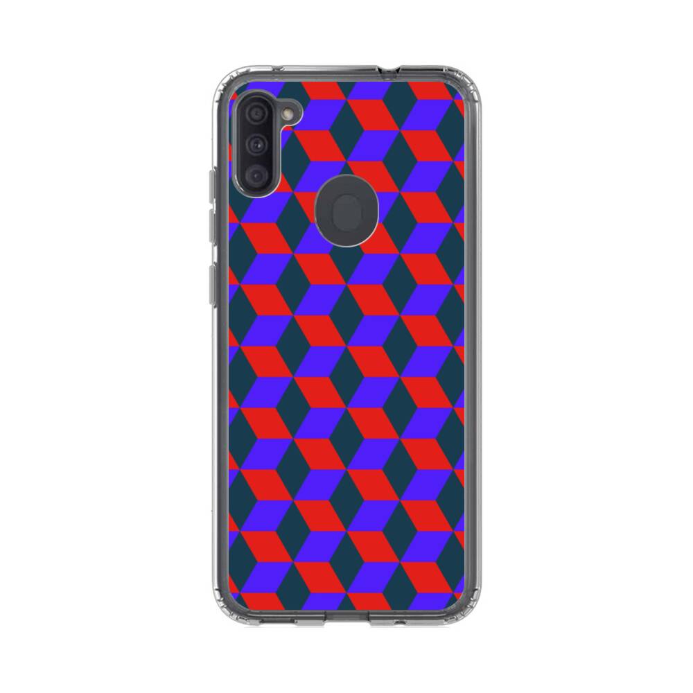 3D Kubus im Rot und Blau Samsung Galaxy A11 Silikon Hülle● Sehr robust & langlebig