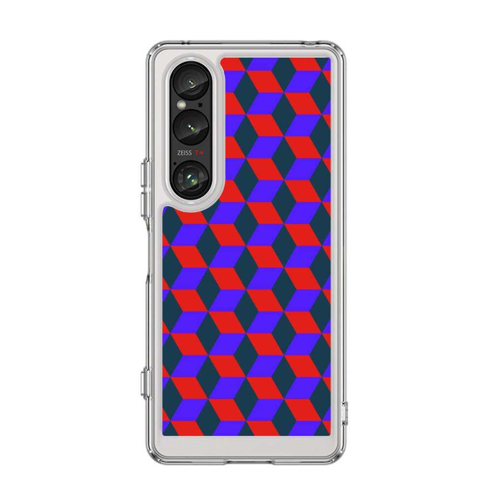 3D Kubus im Rot und Blau Sony Xperia 1 VI Silikon Hülle● Sehr robust & langlebig