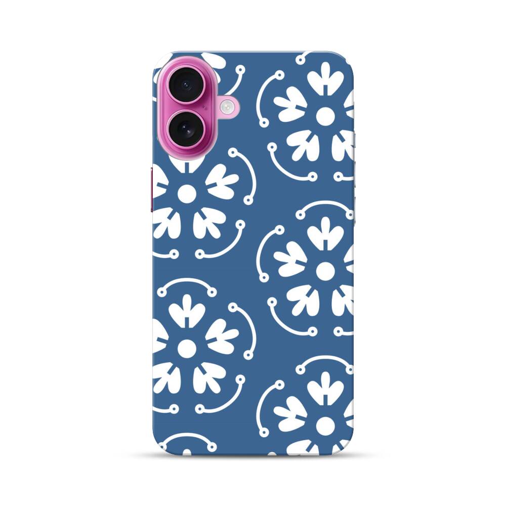 Indigo Blumenkopie Apple iPhone 16 Plus Hülle● Rundum bedruckbar