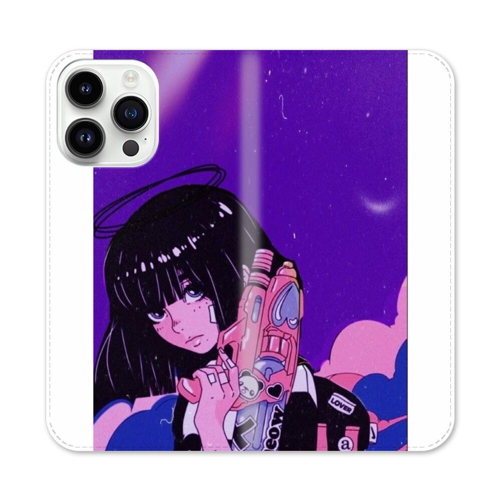 Retro Mädchen in die Zukunft Apple iPhone 14 Pro Max Flip Case● Seitlich klappbar
