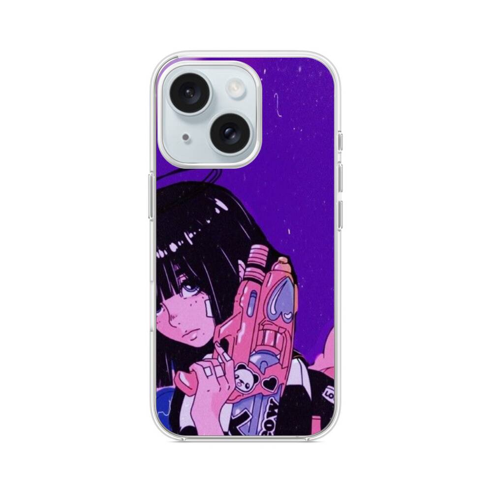 Retro Mädchen in die Zukunft iPhone 15 MagSafe‑kompatible Silikonhülle mit Kamera‑Kickstand● Sehr robust & langlebig