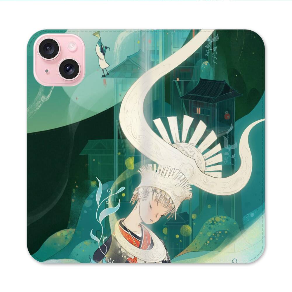 Ethnisches Mädchen Apple iPhone 15 Flip Case● Seitlich klappbar