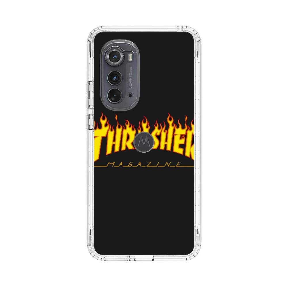Schwarz Thrasher Logo Motorola Edge (2022) Silikon Hülle● Sehr robust & langlebig