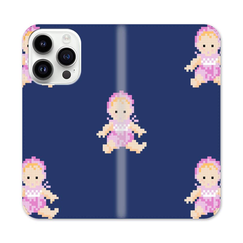 Kawaii verpixeltes Baby Apple iPhone 14 Pro Flip Case● Seitlich klappbar