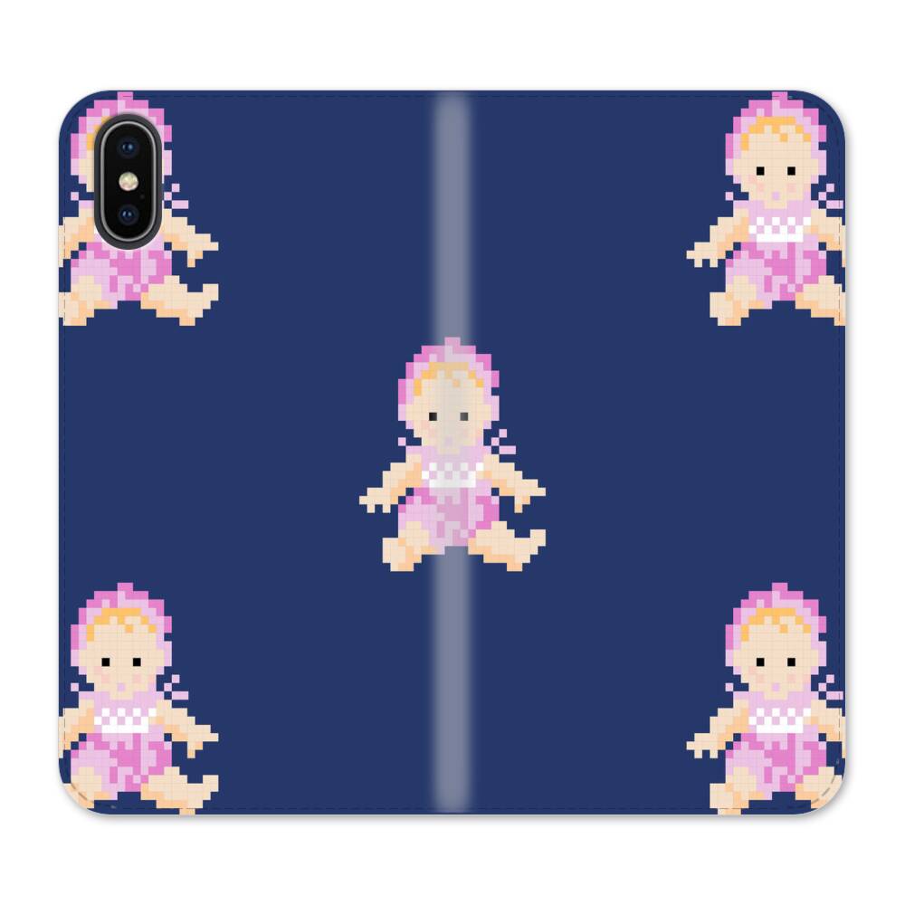 Kawaii verpixeltes Baby iPhone X Wallet Leder Hülle● Seitlich klappbar