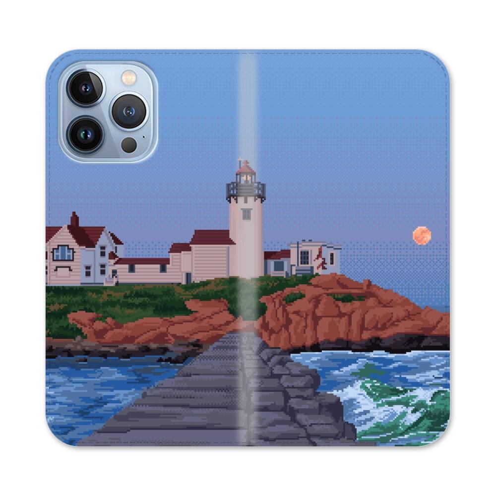 Verpixelter Leuchtturm Apple iPhone 13 Pro Flip Case● Seitlich klappbar