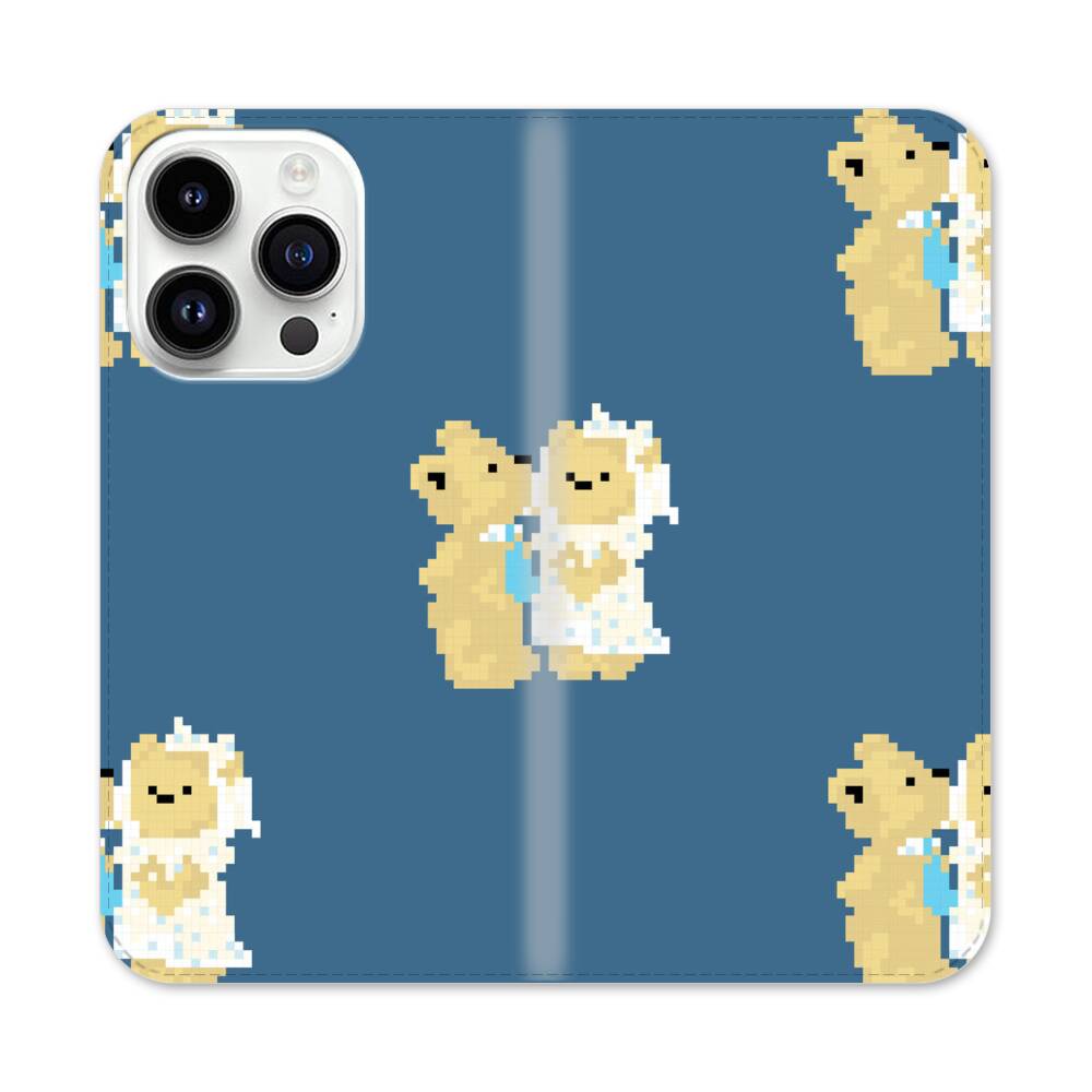 Niedliche verpixelte Bären Apple iPhone 14 Pro Flip Case● Seitlich klappbar