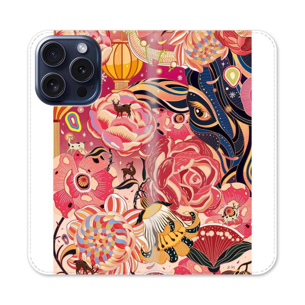 Chinesische Pfingstrose Apple iPhone 15 Pro Flip Case● Seitlich klappbar