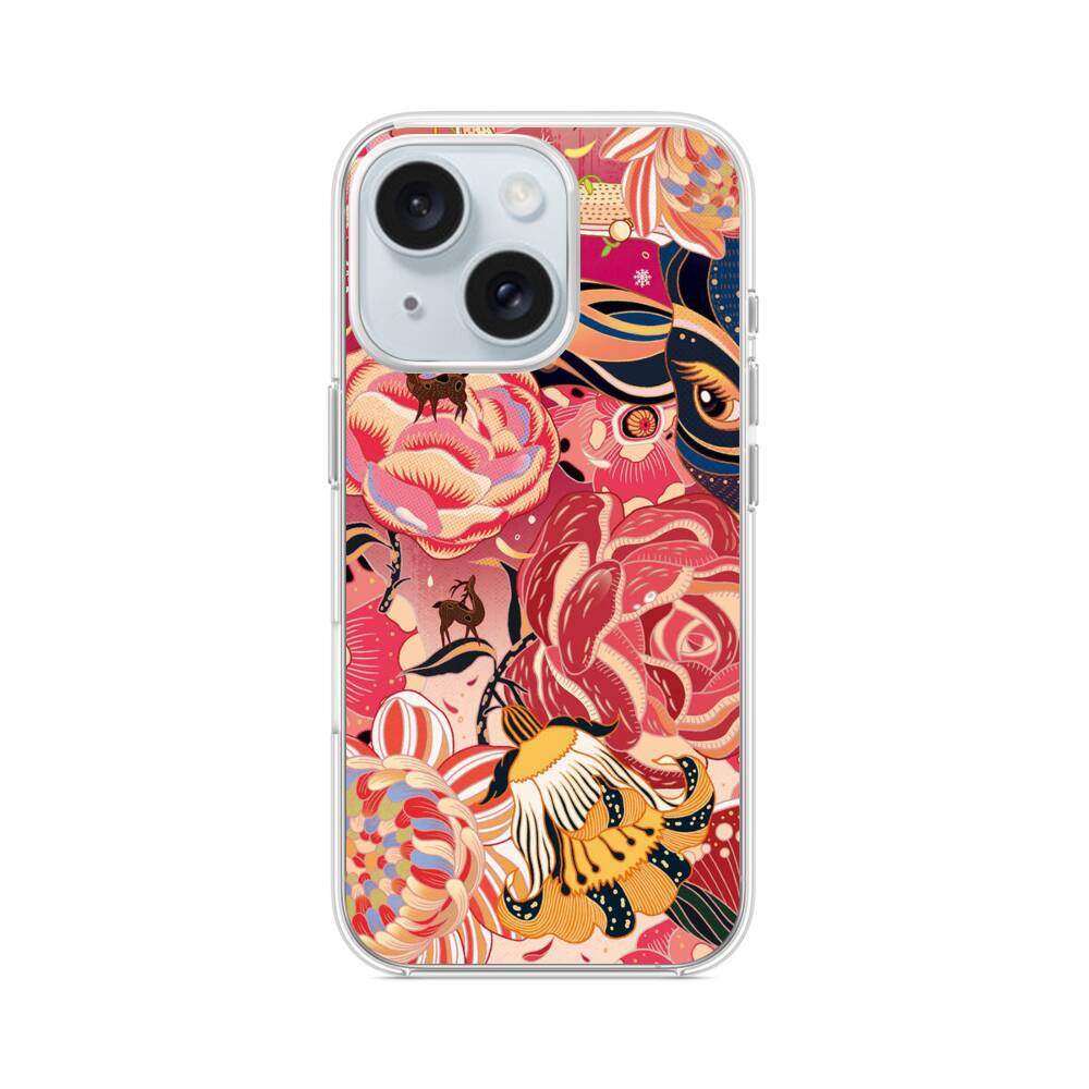 Chinesische Pfingstrose iPhone 15 MagSafe‑kompatible Silikonhülle mit Kamera‑Kickstand● Sehr robust & langlebig