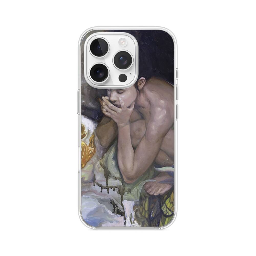 Nachdenkliches Mädchen iPhone 15 Pro MagSafe‑kompatible Silikonhülle mit Kamera‑Kickstand● Sehr robust & langlebig