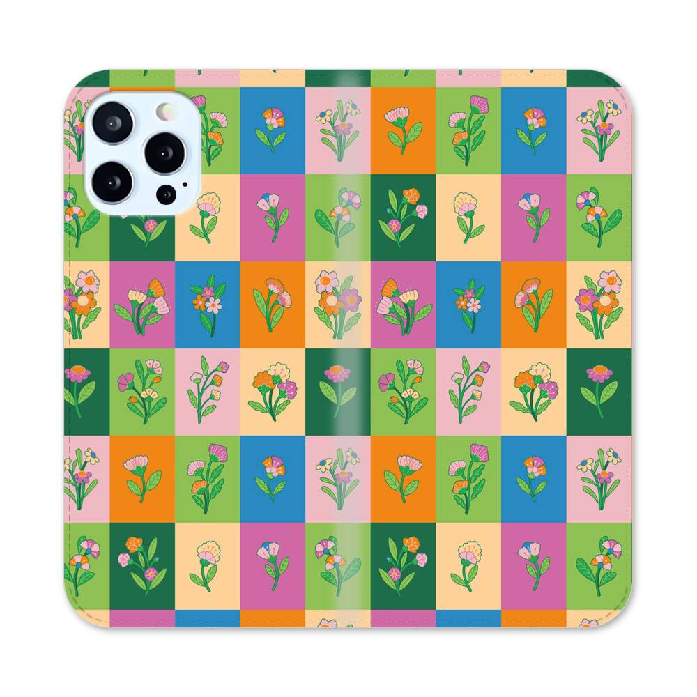 Nahtlose Blümchen Blöcke Apple iPhone 12 Pro Flip Case● Seitlich klappbar