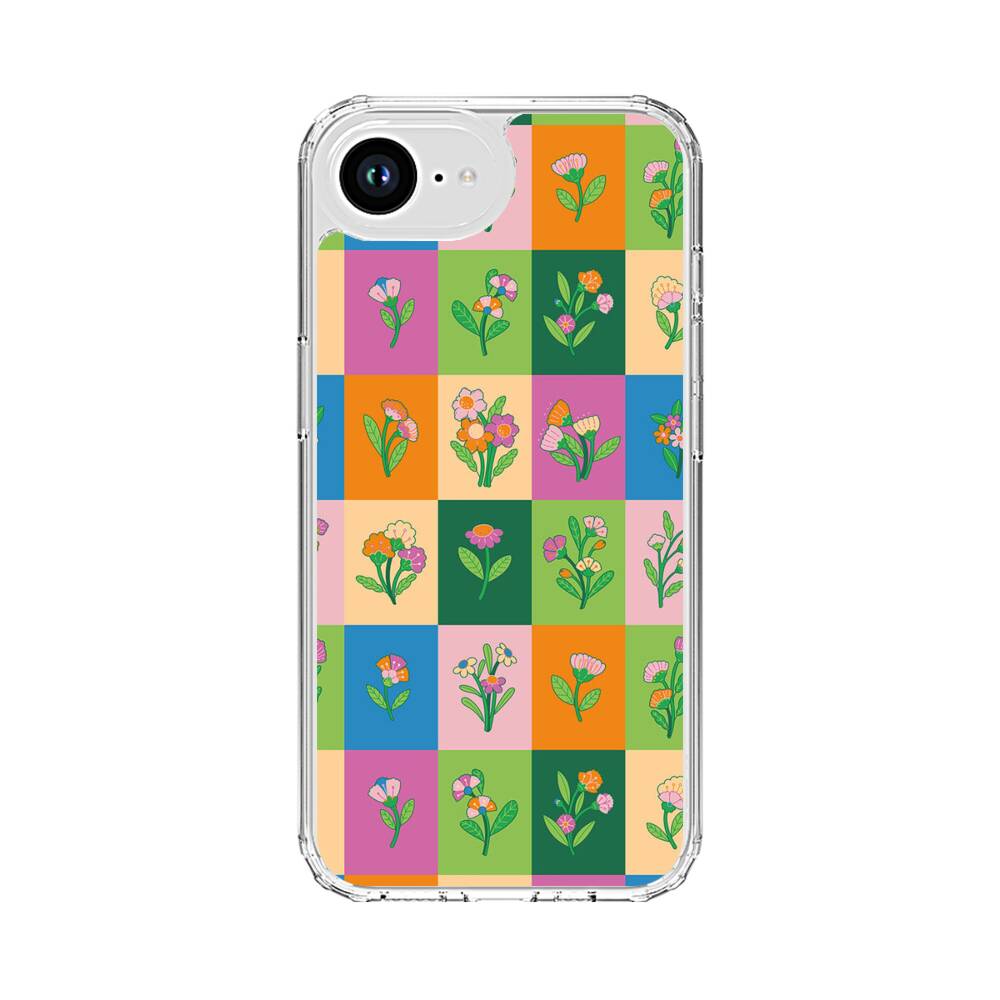 Nahtlose Blümchen Blöcke Apple iPhone 16e Silikon Hülle● Sehr robust & langlebig