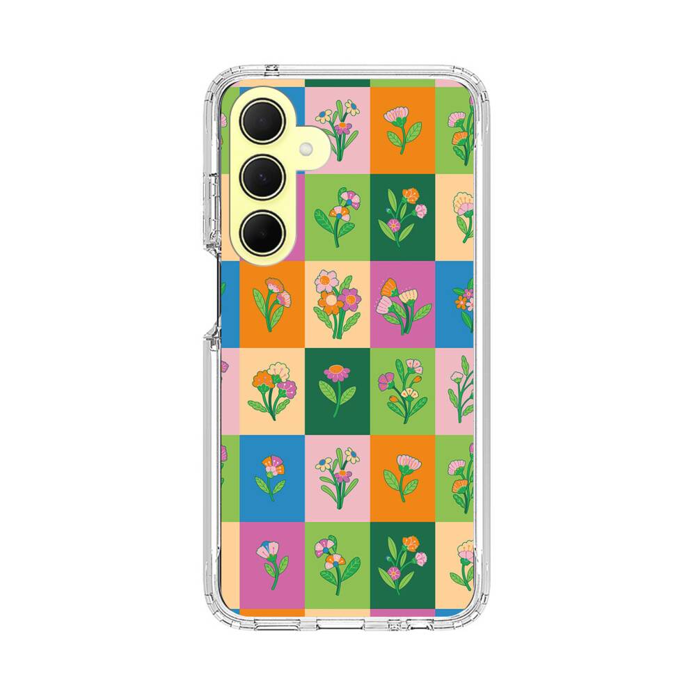 Nahtlose Blümchen Blöcke Samsung Galaxy A35 Silikon Hülle● Sehr robust & langlebig