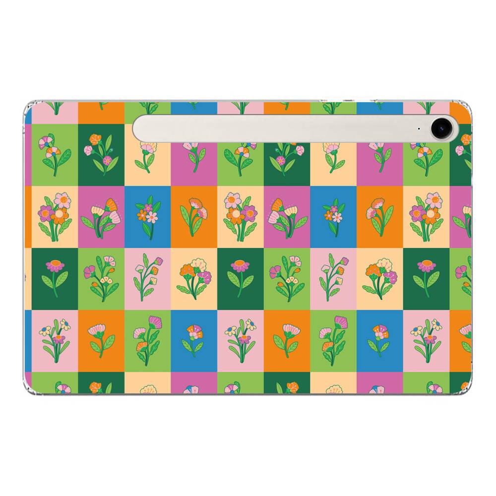 Nahtlose Blümchen Blöcke Samsung Galaxy Tab S9 FE Silikon Hülle● Sehr robust & langlebig