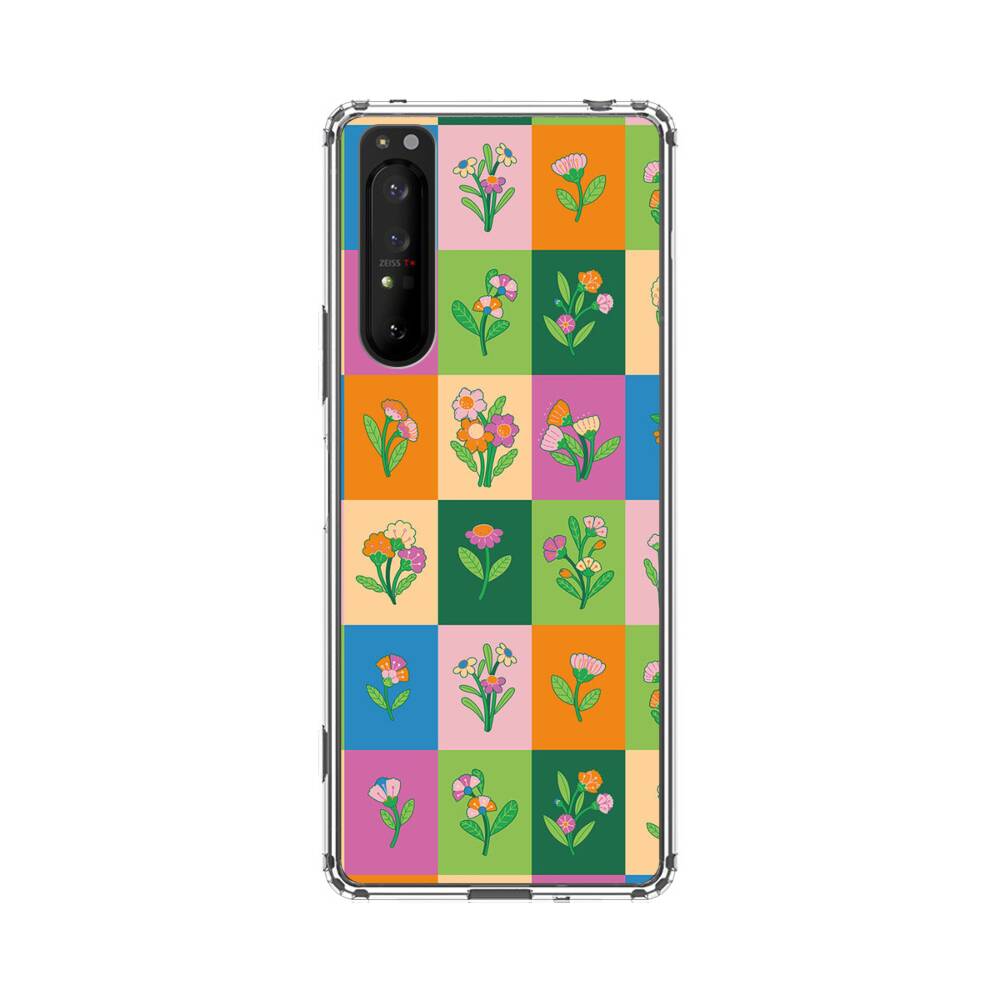 Nahtlose Blümchen Blöcke Sony Xperia 1 II Silikon Hülle● Sehr robust & langlebig