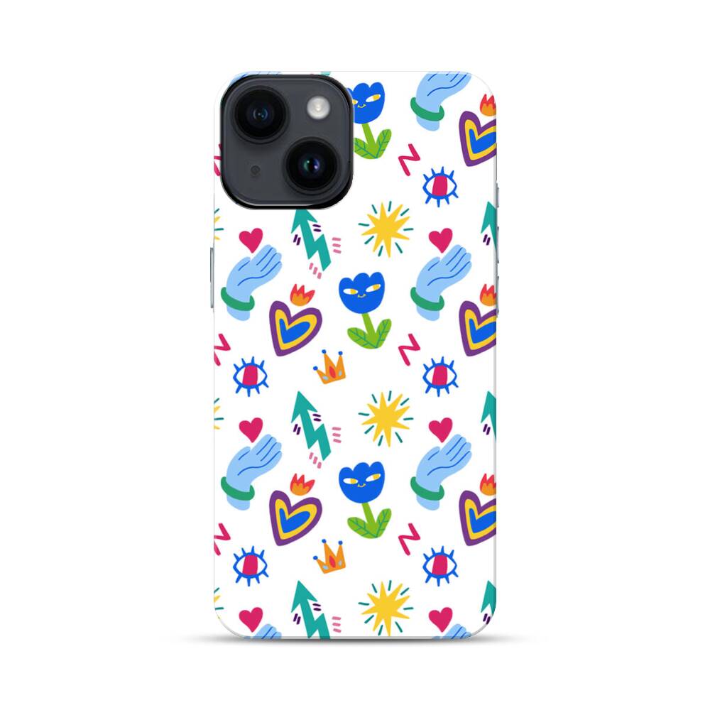 Niedliche Blumen und Herzen Graffitis Apple iPhone 14 Hybrid Case● Rundum bedruckbar