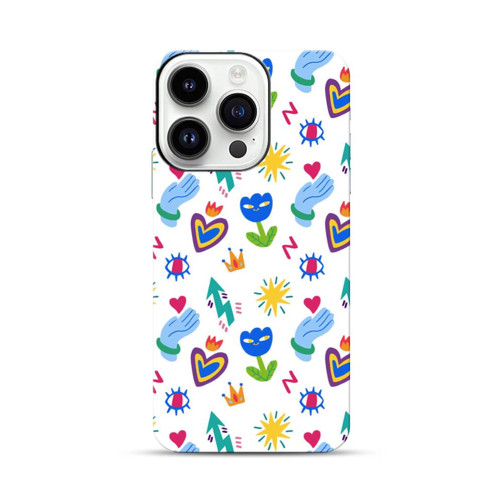 Niedliche Blumen und Herzen Graffitis Apple iPhone 14 Pro Hybrid Case● Rundum bedruckbar