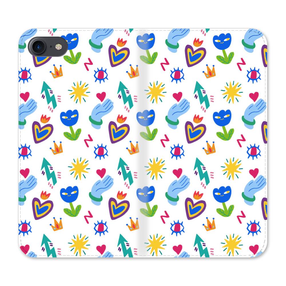 Niedliche Blumen und Herzen Graffitis Apple iPhone SE (2020) Flip Case● Seitlich klappbar