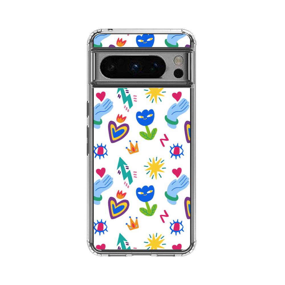 Niedliche Blumen und Herzen Graffitis Google Pixel 8 Pro Silikon Hülle● Sehr robust & langlebig