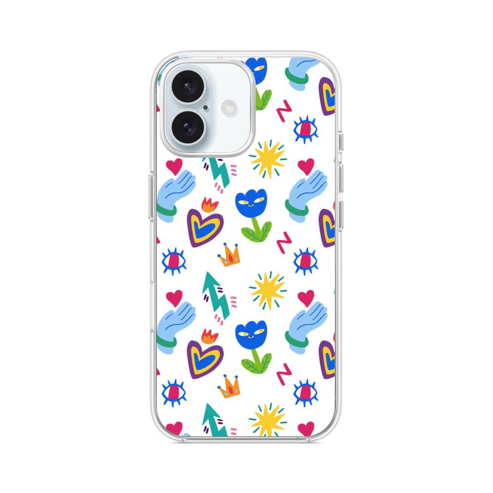 Niedliche Blumen und Herzen Graffitis iPhone 16 Plus MagSafe‑kompatible Silikonhülle mit Kamera‑Kickstand● Sehr robust & langlebig