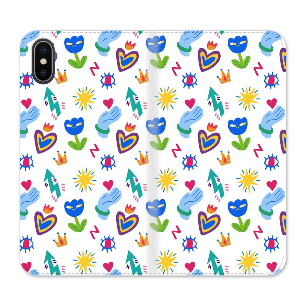Niedliche Blumen und Herzen Graffitis iPhone XS Wallet Leder Hülle● Seitlich klappbar