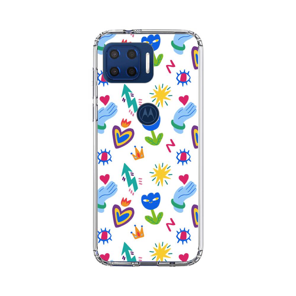Niedliche Blumen und Herzen Graffitis Motorola Moto G 5G Plus (2020) Silikon Hülle● Sehr robust & langlebig