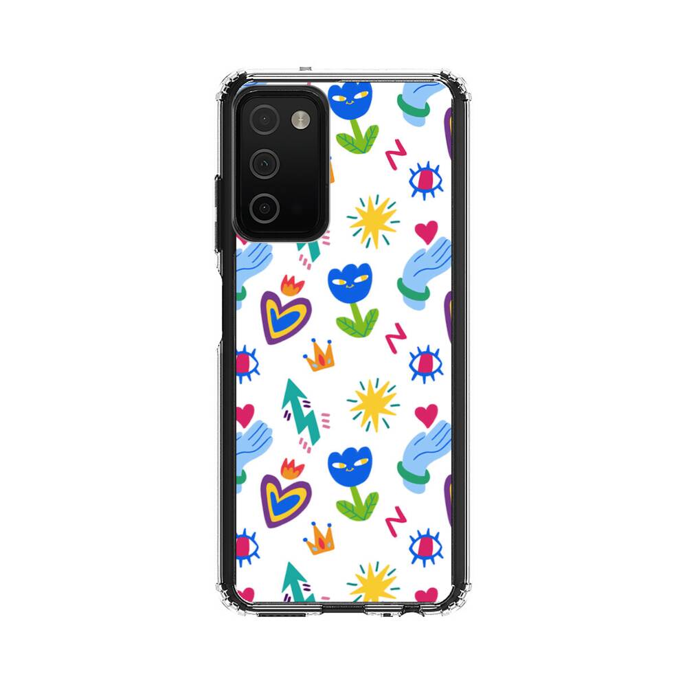Niedliche Blumen und Herzen Graffitis Samsung Galaxy A03s Silikon Hülle● Sehr robust & langlebig